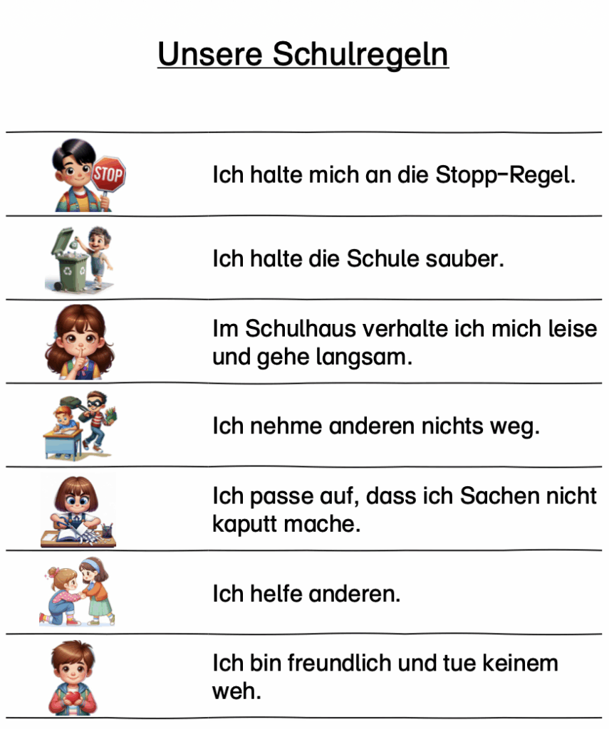 Unsere Schulregeln helfen uns in der Grundschule dabei, freundlich miteinander umzugehen, sicher zu lernen und uns in unserer Schulgemeinschaft wohlzufühlen.